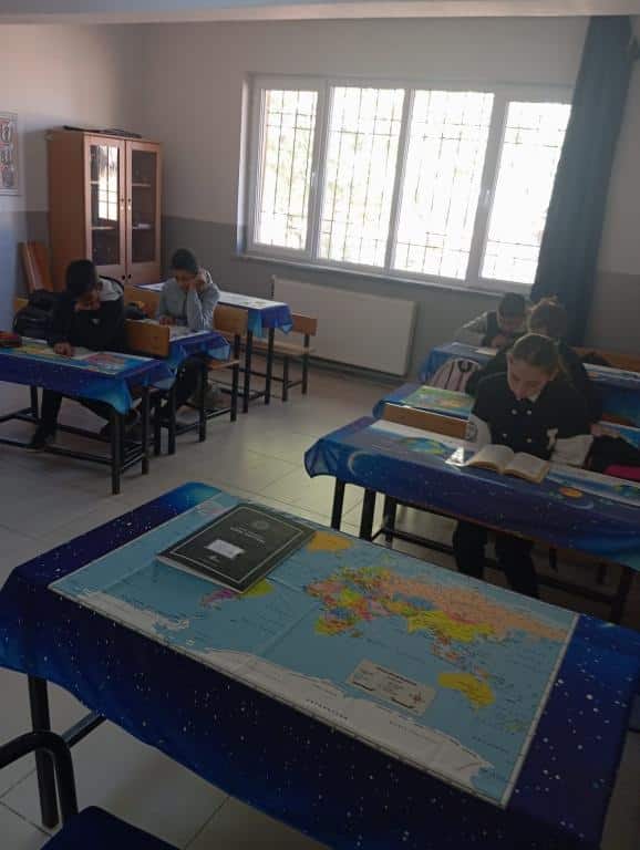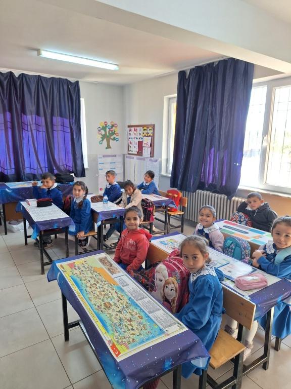Gizil öğrenmeli renkli masa örtülerimiz sınıflarımıza renk kattı.